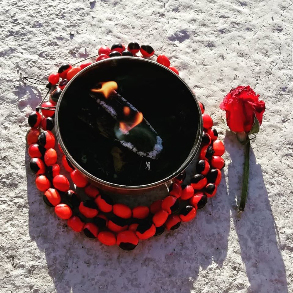 Una mujer, guardiana del fuego sagrado, se entrega a su luz, a sus llamas, a su poder y renacer como el ave fénix para ser ella misma la representación del fuego vivo y femenino que nos va a guiar.
