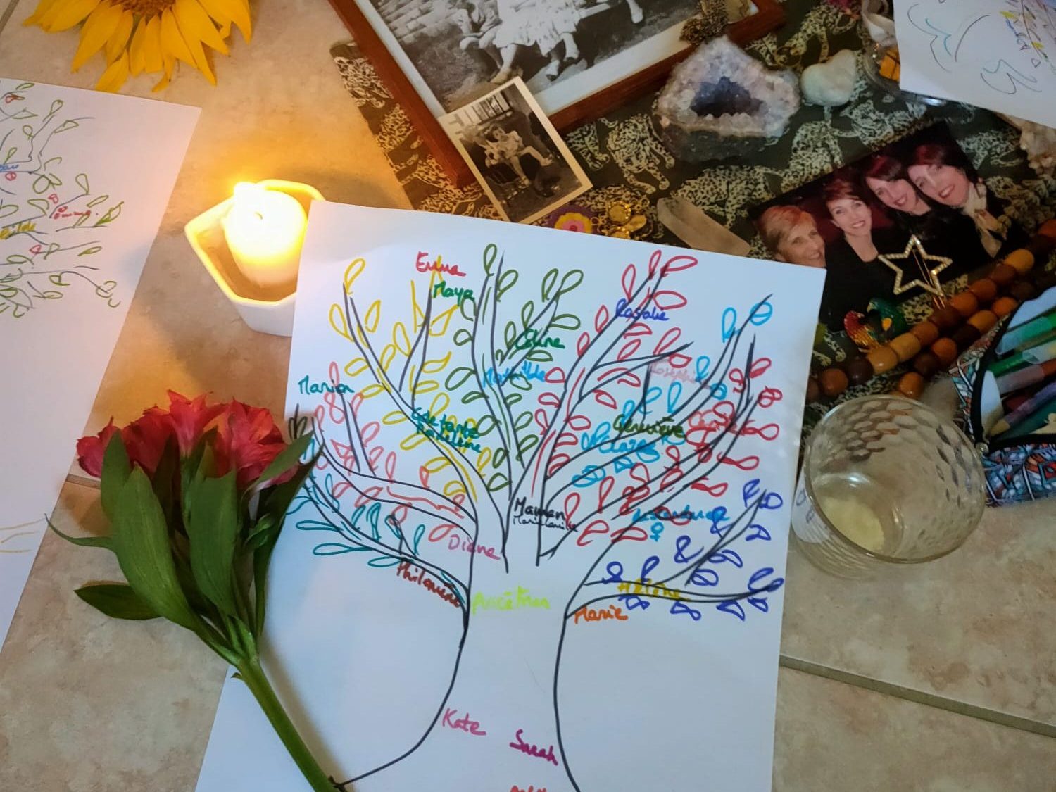 «El formar parte de este círculo femenino ha sido una experiencia transformadora. El reconocer a mi linaje femenino y agradecer por lo que permanece en mi de ellas, lo que tengo que trabajar y sanar, y el camino que ellas han recorrido para que yo esté aquí. «